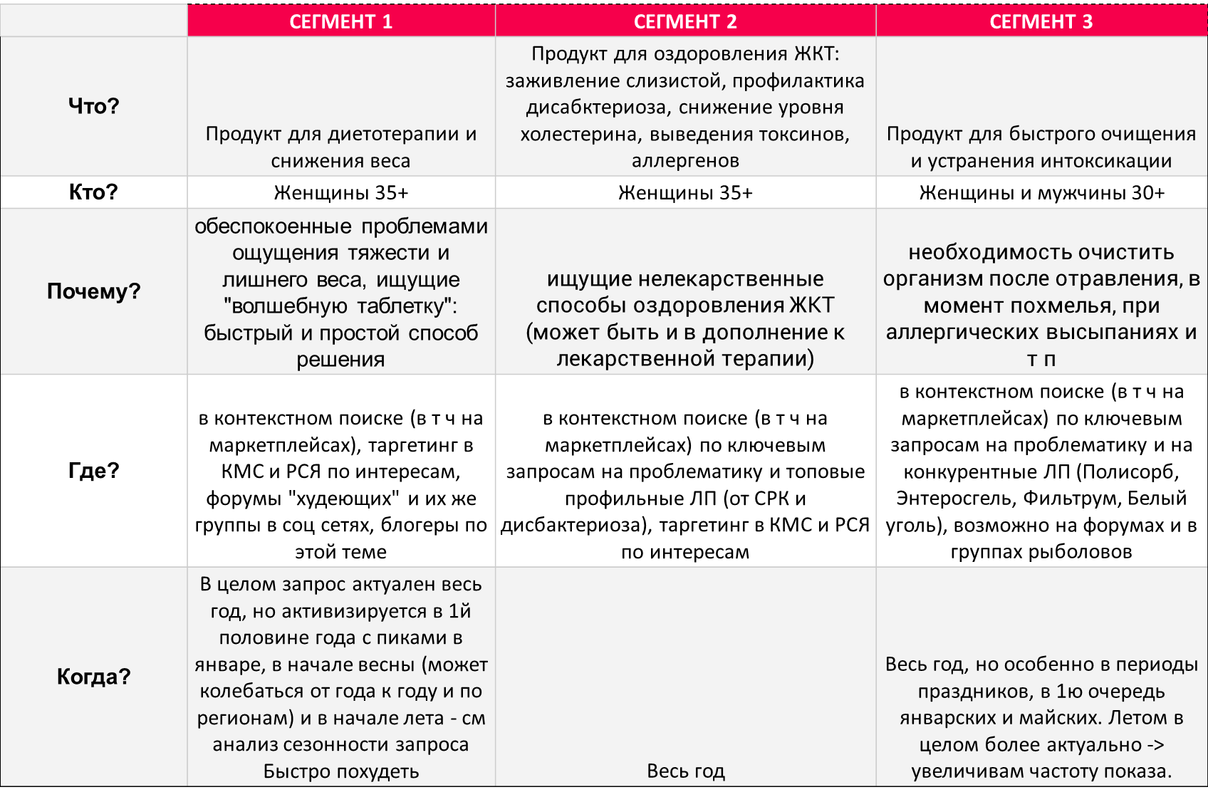 Анализ готовых данных для определения конкурентов в рынке (продажи); потенциала специалистов, их выписки и профиля пациентов (ЛП); Интернет трафика и семантики конкурентов vs наш БАД для отстройки и разработки РК.